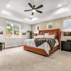 Featured in 2022 Parade of Homes by Maves Construction with stunning neutral finishes. This Hillside Sanctuary home features modern prairie architecture with warm, contemporary, yet timeless design. Dream kitchen with white oak cabinets, built-in glass hutch, kitchen drawers feature utensil storage/knife block, space storage and pullouts. Stunning high grade quartzite countertops with 3" mitered top island. Main floor primary suite with spa-like master bath joins matte white tile accentuated by warm tones and champagne gold fixtures. Jaw-dropping free floating staircase is a focal point the second you walk up to the front door through large west facing courtyard. The upper level features 3 additional bedrooms and flex room loft for second living space, home office etc. Step out the back door and you will truly know why we call this home a sanctuary. Large covered patio with pergola with custom fabricated focal point 10' long fire wall and trough waterfall. This home will truly wow in every direction!